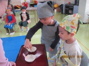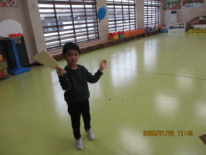 その後、年少組は正月遊びをしました。