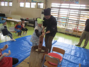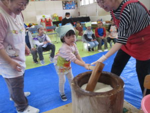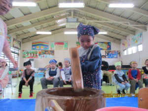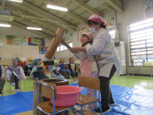 年長組は親子で一緒に餅つきをしました。