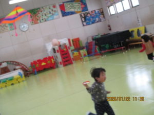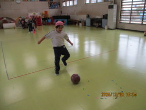 今日は、幼稚園のホールでサッカー教室がありました。