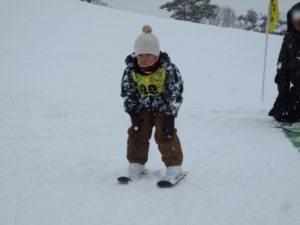年中組は前よりも高いところから滑って、止まる練習をたくさん頑張りました。