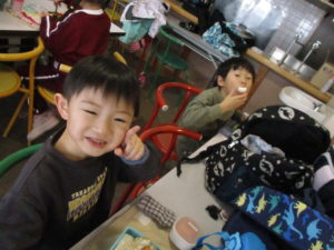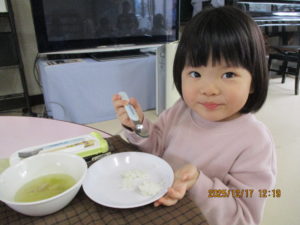 園に帰ってきて、昼食です。