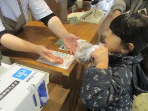 財布に500円を入れてもらい、買い物体験をしました。