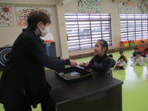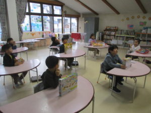 「早寝・早起き・朝ご飯、うがい手洗い」元気に過ごす約束をしました。