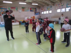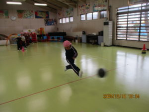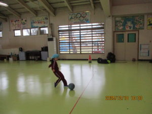 今日は、幼稚園のホールでサッカー教室がありました。