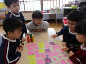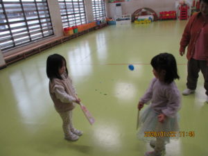 その後、年少組は正月遊びをしました。
