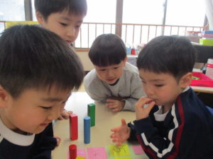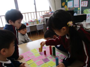 年長組は、昨日の復習をして・・・