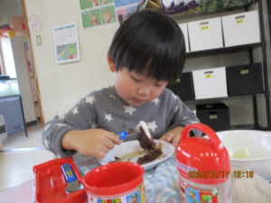 園に帰ってきて、昼食です。