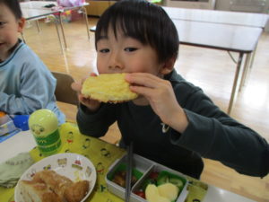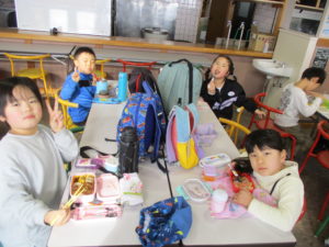 年長組は弁当を食べて午後も頑張ります!