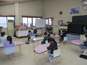 「早寝・早起き・朝ご飯、うがい手洗い」元気に過ごす約束をしました。