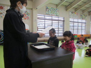 そして全国児童画コンクールで入選した園児の表彰式を行いました。