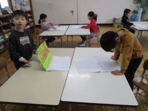 年長組は、冬休み帳を見せ合って