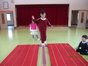 平均台にも挑戦。落ちないように慎重に渡り、渡りきるととっても良い笑顔です。
