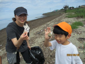 きれいな形の貝殻、丸い石。たくさん見つけてきました。