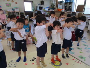 いちにちようちえんの時は遊んでびしょ濡れになりましたが、今日は我慢しました。