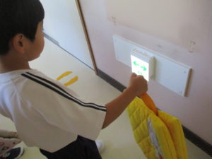 年長組は幼稚園内の誘導灯が何個あるのか園内を探し回りました。