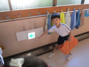 年長組は幼稚園内の誘導灯が何個あるのか園内を探し回りました。