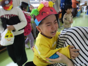 鬼が逃げて行くと「怖かった~」「いなくなって良かった!」と安心した様子でした。