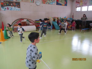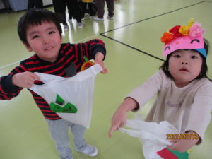 今日は1日遅れで、豆まき会をしました。