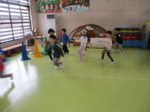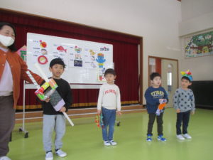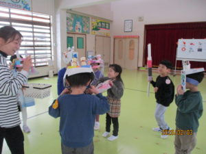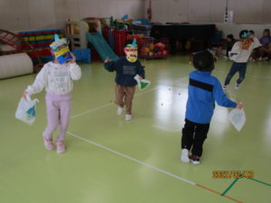 今日は1日遅れで、豆まき会をしました。