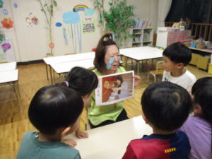 そして、七夕の由来を年長組の子どもたちが劇発表(ぶっつけ本番)