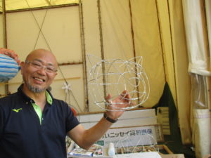 骨組みの様子や和紙を貼る様子を間近で見学させてもらいました。