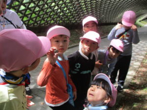 色々な物を見つけて手に取ったり、友達や先生に教えたりしていました。
