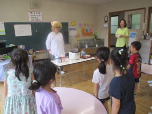 年少組と年中組はしゃぼん玉遊びをしました。