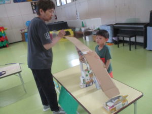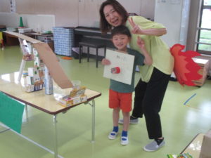 子どもたちの力作を先生方が遊んだり、買い物したりしてくれました。