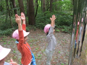 不思議な森の冒険は、ここからです。3グループに分かれてさらに冒険の始まりです。