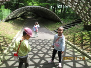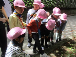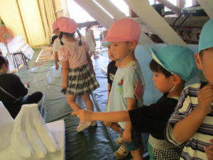 色々な物を見つけて手に取ったり、友達や先生に教えたりしていました。