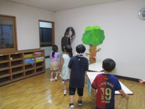 そして、七夕の由来を年長組の子どもたちが劇発表(ぶっつけ本番)