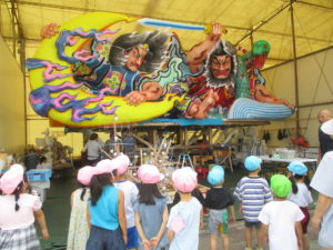 今日は全園児で青森山田学園のねぶた小屋に行ってきました。