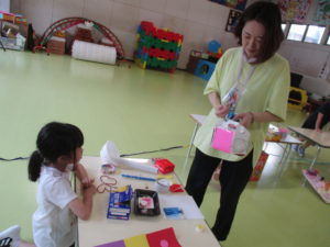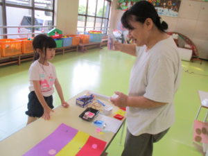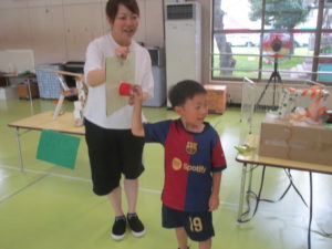 子どもたちの力作を先生方が遊んだり、買い物したりしてくれました。