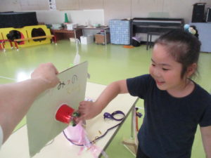 「いらっしゃいませ~!」「何のアイスにしますか?」と、アイスやさんになりきって楽しんでいました。