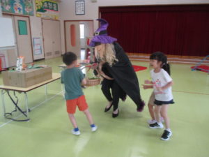 本物の魔女が現れて、みんなにお菓子をプレゼントしてくれました。