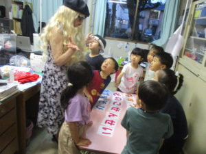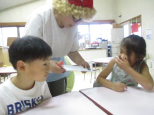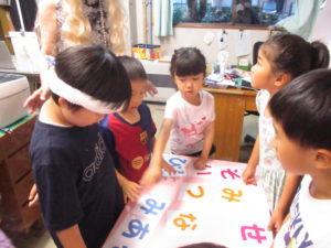 アメリカ人はひらがなを並べたいんだけどわからないんだ!と子どもたちは察して頭を使い始めました。