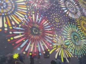 ねぶたや金魚、いろいろな花が細かく表現されていて、子どもたちもじっくり見ていました。
