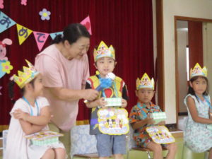 今日は7月、8月、9月の夏生まれの子どもたちのお誕生会でした。