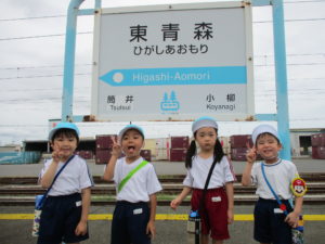 青森駅に着くと、たくさん人がいて少しビックリした様子の子どもたちは、「電車来るかな」と線路をじっと眺めていました。