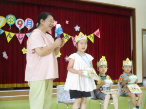 今日は7月、8月、9月の夏生まれの子どもたちのお誕生会でした。